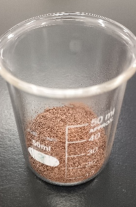 粉砕してみると色調は暗赤褐色に分類されます。