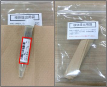 検体提出用袋に入れます。検体取り違え防止のため、